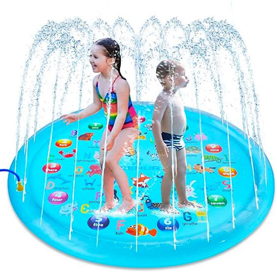 Nuestra alfombra de juego para rociar y salpicar agua está probada y certificada como segura para que tus pequeños se diviertan.